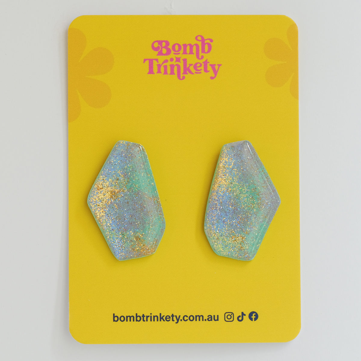 These beautifully glittery gems are the perfect party accessory! Shimmery aqua, lilac and gold glitter explodes under a resin coat.