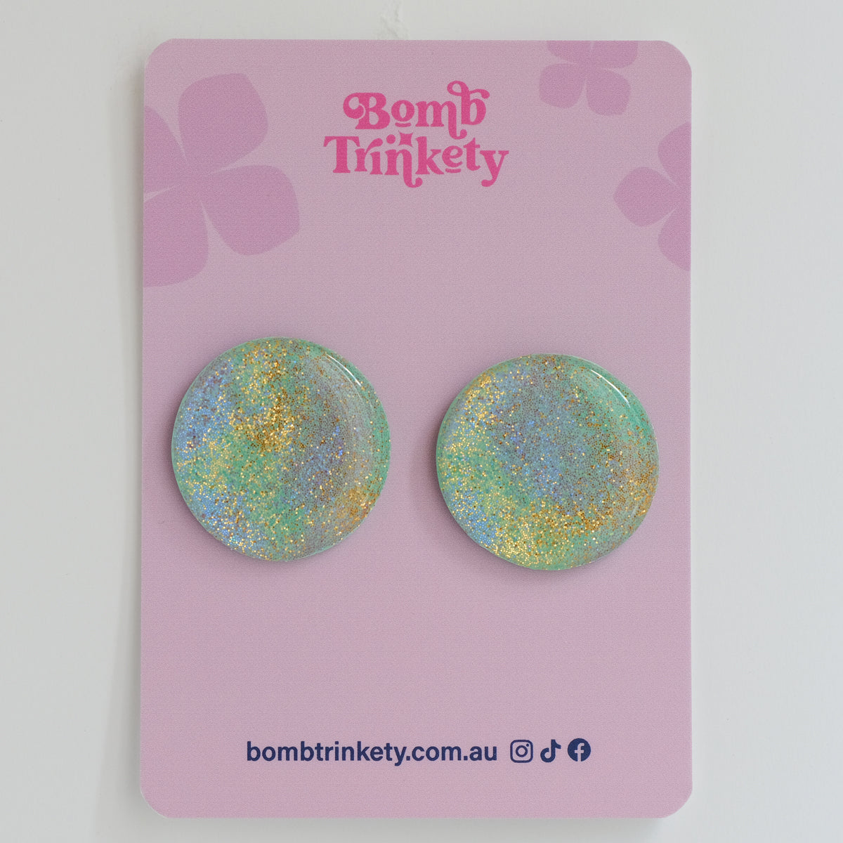 These beautifully glittery gems are the perfect party accessory! Shimmery aqua, lilac and gold glitter explodes under a resin coat.