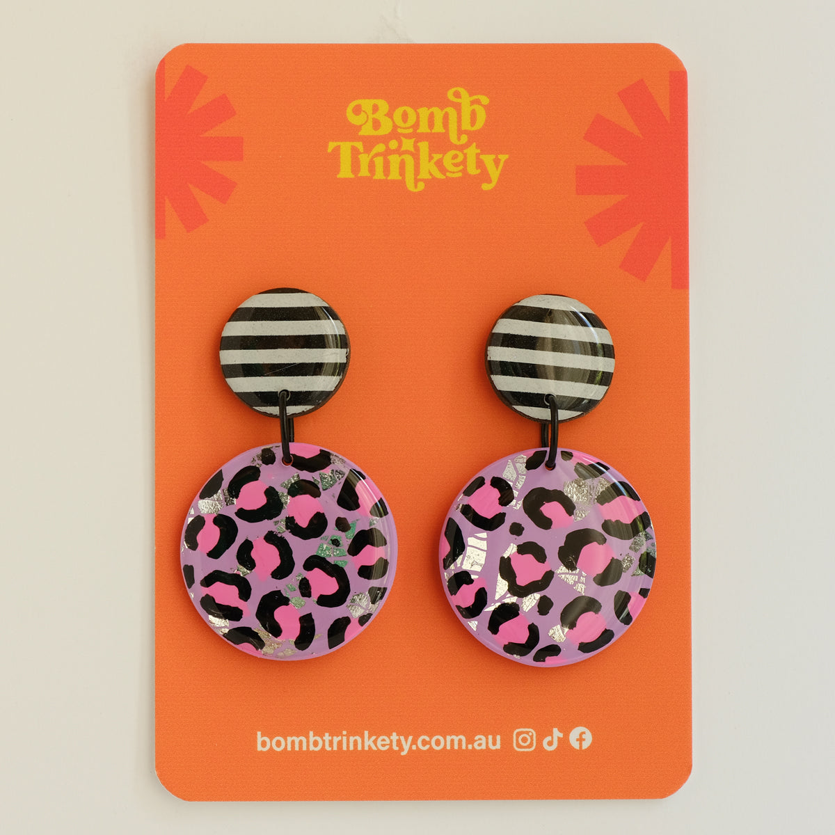Shimmery and oh-so funky! Rockin' Round features pink leopard print on a lavender base, with silver foil. Leopard print detail is hand-drawn.