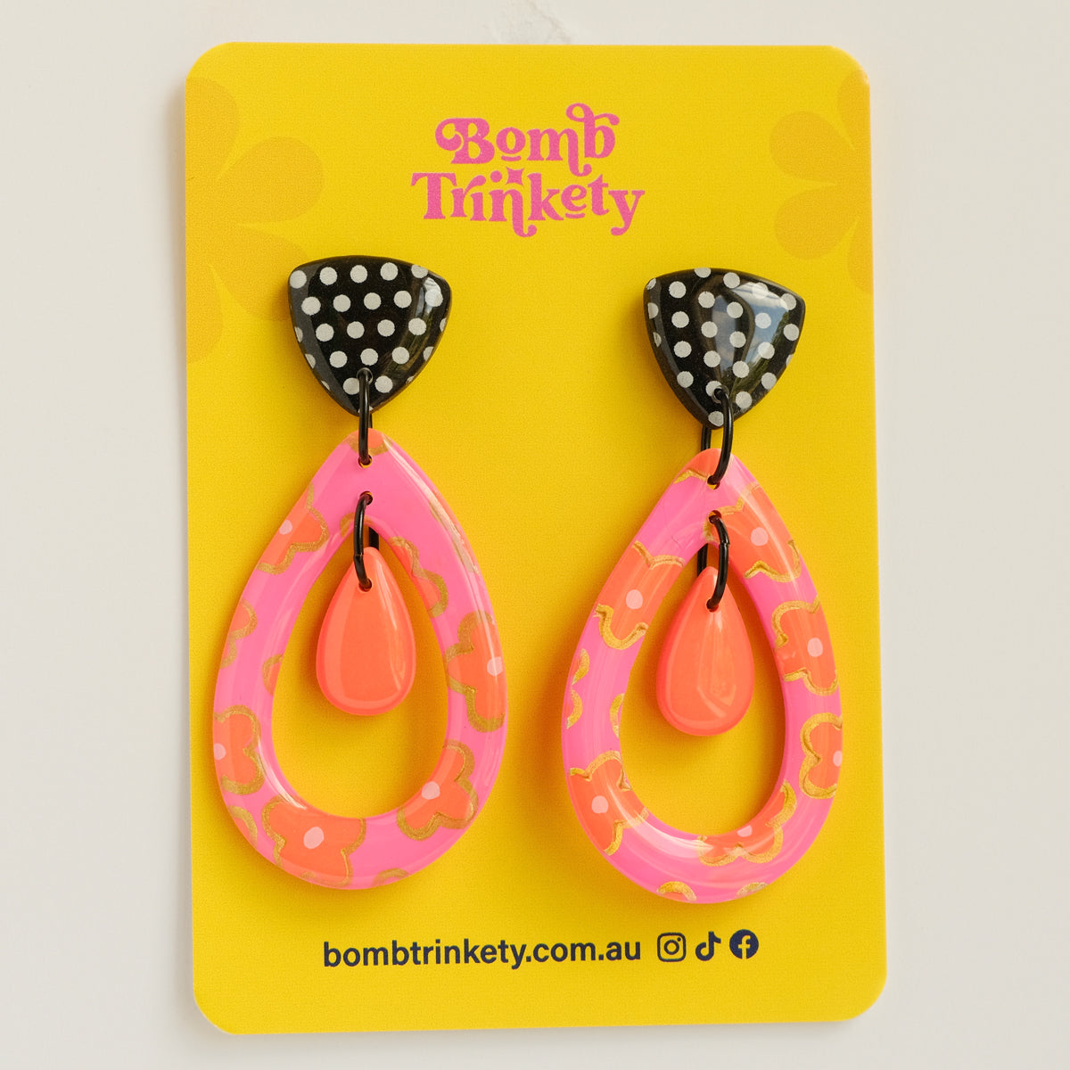 Deliciously fresh, Mimosa Sunrise's pink and orange floral design features hand-drawn metallic gold paint detail and cute black and white polka dot tops!