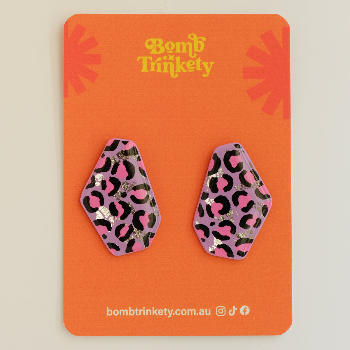 Shimmery and oh-so funky! Rockin' Round features pink leopard print on a lavender base, with silver foil. Leopard print detail is hand-drawn.